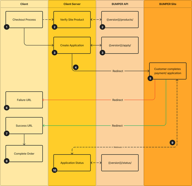 If status isn't captured when customer is redirect from BUMPER to client, or webhooks aren't used for real-time updates. The Status endpoint can be used to retrieve application status.
